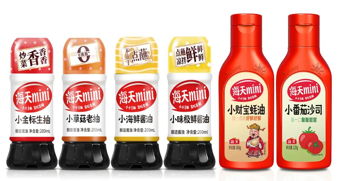 针对不常下厨、或有外食需求的人群,海天推出了超过100款小份量产品,包括小金标生抽、小草菇老抽、海小番茄沙司等,欢迎戳下图入手!