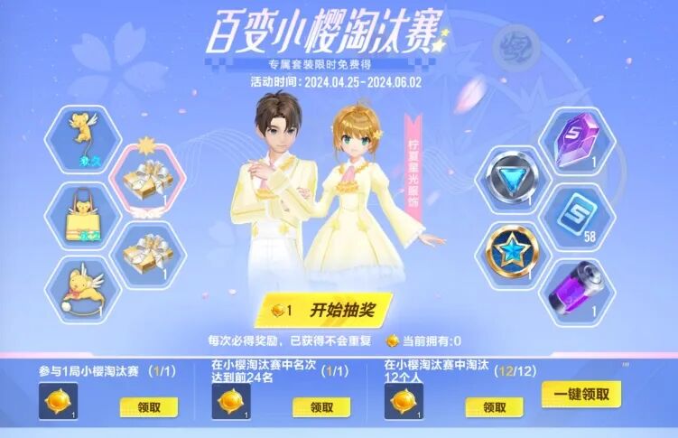 即日起-6月2日,车手们登录游戏通过参与百变小樱淘汰赛活动并完成指定任务,即可获得库洛币,使用库洛币即可参与抽奖!最多仅需要14个库洛币即可将柠夏星光套装(双性别)带回家啦~