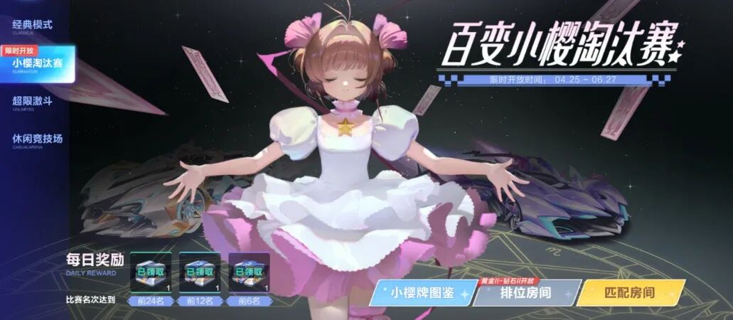 车手们比赛名次达到前6、12、24名,即可领取相应的每日宝箱奖励~集齐小樱牌图鉴还可领取魔力极速套装(双性别)~