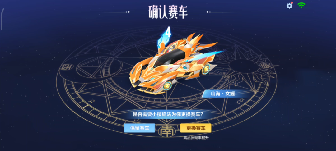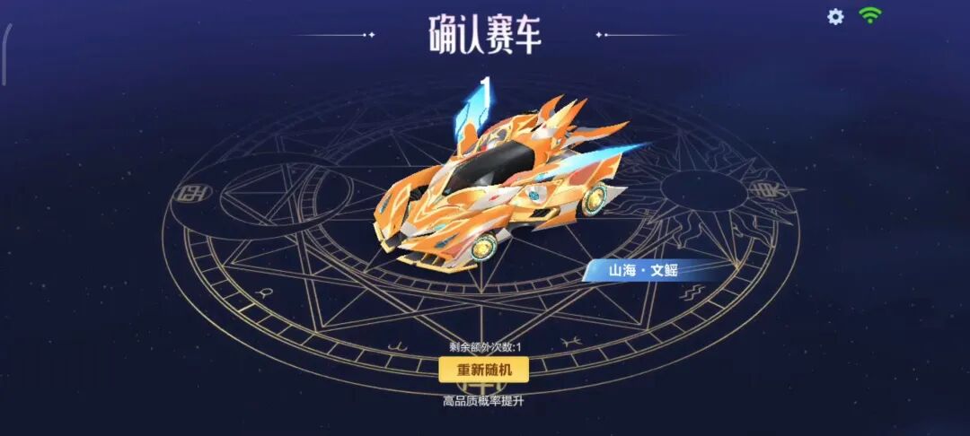举个例子:小橘子在第三轮结束后随机到A车山海·文鳐,在使用额外次数之后升级为机甲赛车墨影青龙~