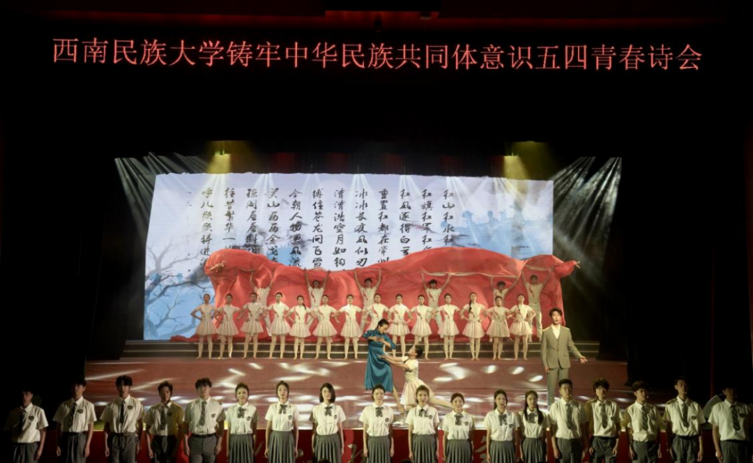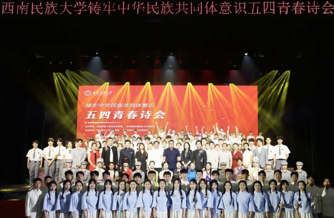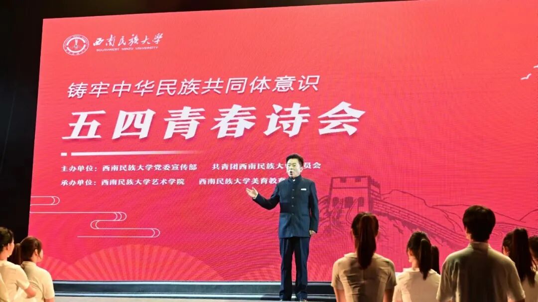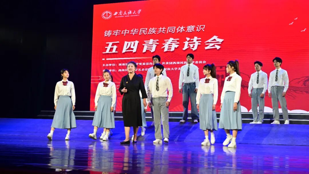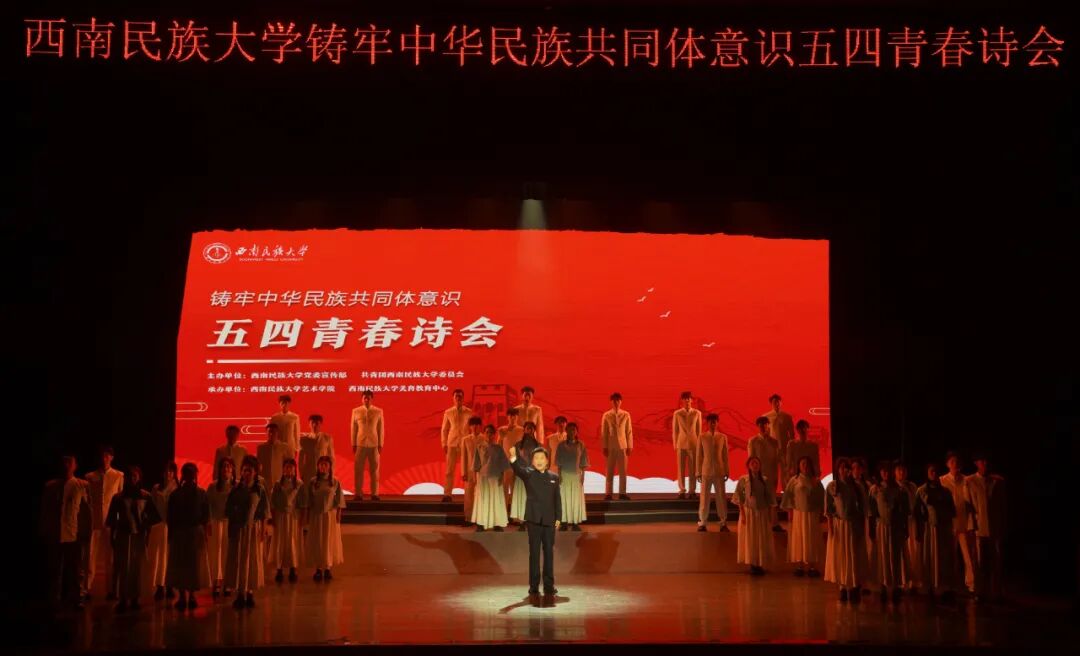 4月29日下午,由我校艺术学院、美育教育中心承办的西南民族大学铸牢中华民族共同体意识五四青春诗会在航空港校区新星剧场成功举办。