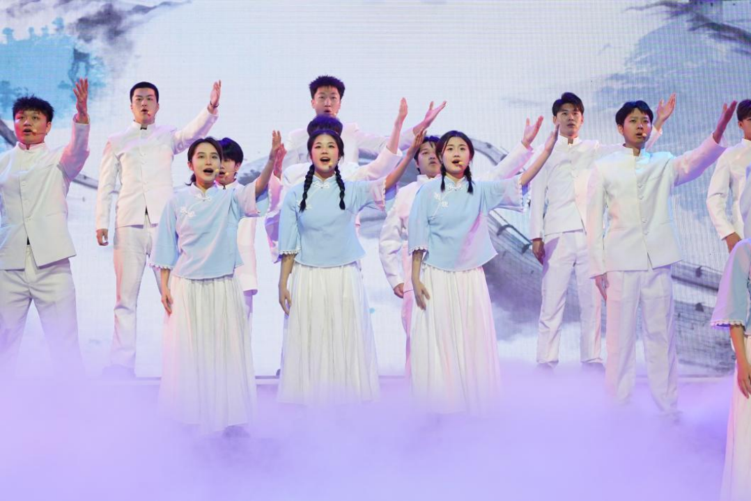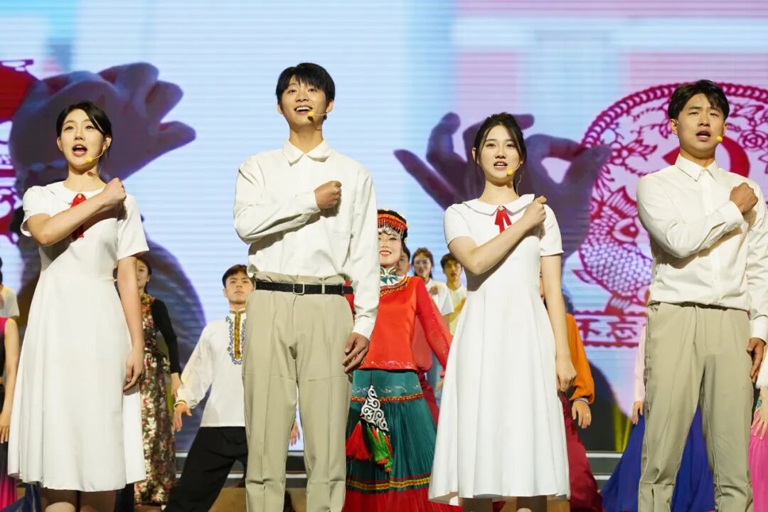 200余名师生生动演绎了这堂以诗贯穿的大思政课。他们用情境朗诵的方式生动演绎了《中华民族共同体概论》教材经典内容,铿锵有力的字句,彰显着新时代新青年铸牢中华民族共同体意识的新使命新担当。诗朗诵《让民族团结之花永远绽放》以诗舞的形式,生动展现了铸牢中华民族共同体意识就是要引导各族人民牢固树立休戚与共、荣辱与共、生死与共、命运与共的共同体理念。