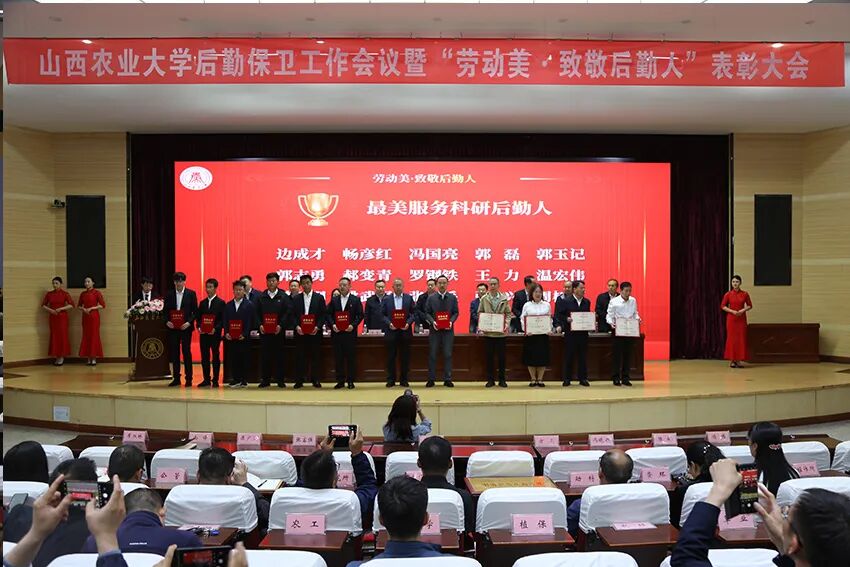 4月29日上午,学校后勤保卫工作会议暨“劳动美·致敬后勤人”表彰大会在太谷校区书林堂召开。校党委副书记、校(院)长张强出席会议并讲话,校党委常委、副校(院)长张富强主持会议。各有关职能部门负责人,各基层党委、党总支、直属党支部中分管后勤保卫工作的负责人以及受表彰集体及个人代表参加会议。会上,后勤保卫部部长陈斌以《守后勤本位 强服务效能 为学校高质量发展提供高水平保障支撑》为题,向大会作了校院合署改革以来全校后勤保卫工作报告。校党政办公室主任方亮宣读了《山西农业大学关于表彰后勤保卫先进集体的决定》。校工会主席席丛林宣读了《后勤党委 校工会 关于表彰山西农业大学“最美后勤人”的决定》(以下简称《决定》)。《决定》授予动物医学学院、园艺学院、公共管理学院、基础部、棉花研究所、高粱研究所等6个单位获得“后勤管理先进集体”荣誉称号;动物科学学院、资源环境学院、马克思主义学院、高粱研究所、经济作物研究所、玉米研究所等6个单位获得“安全保卫先进集体”荣誉称号。授予赵建刚等10名同志“最美服务教学后勤人”荣誉称号;授予周树军等15名同志“最美服务科研后勤人”荣誉称号;授予王建民等52名同志“最美服务师生后勤人”荣誉称号。![]()