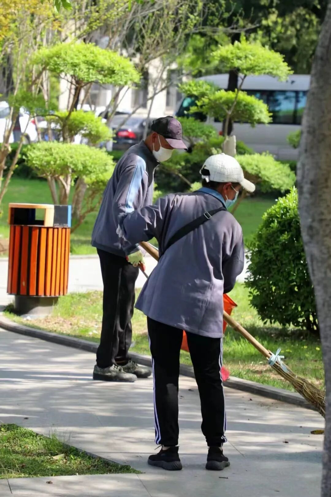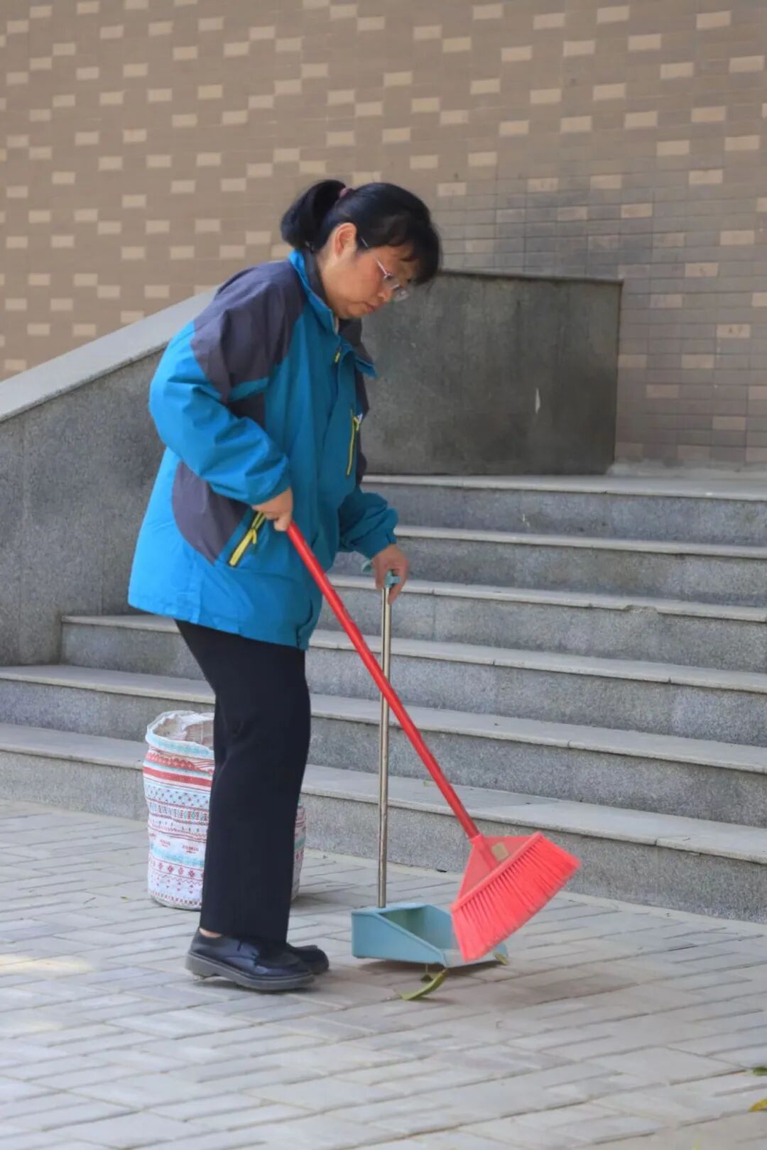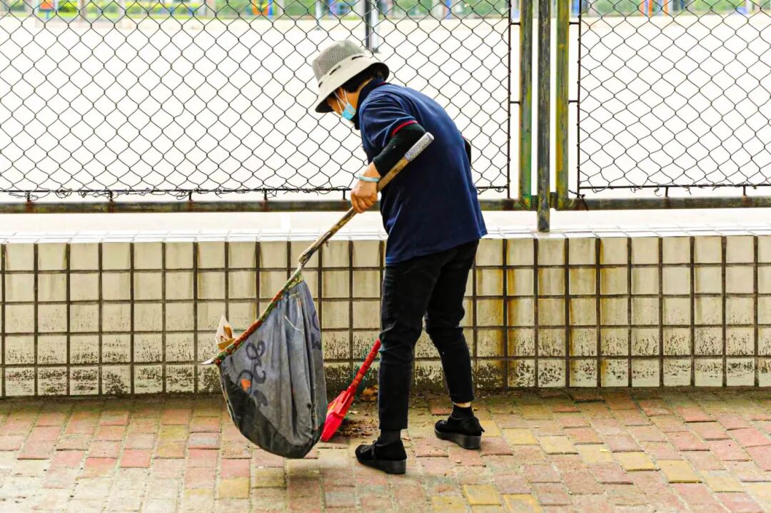 用勤劳的双手清扫落叶 捡拾垃圾
