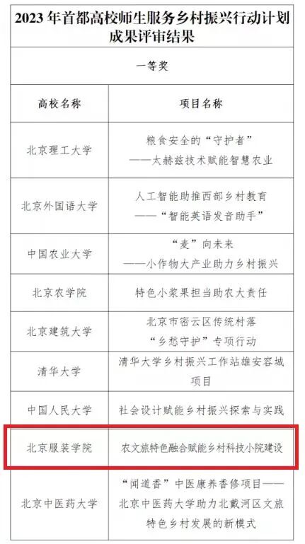 “农文旅特色融合赋能乡村科技小院建设”项目获得“首都高校师生服务乡村振兴行动计划成果”一等奖
