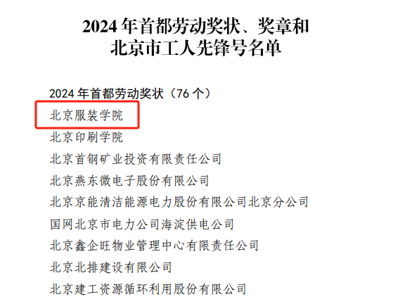 在一年一度的“五一”国际劳动节到来之际,北京服装学院喜获2024年首都劳动奖状,这一荣誉是对学校办学成绩的充分肯定,也是对广大教职工辛勤工作的充分肯定。学校党委梳理总结北服人坚持“党旗红引领时尚红”“为人民而设计”的生动实践,以北服人的劳动成果致敬广大劳动者。
