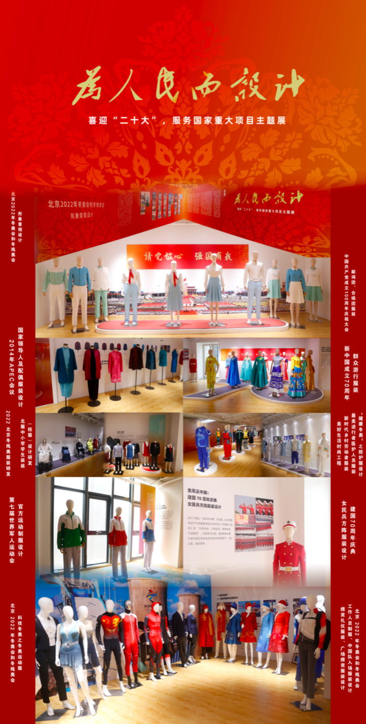 学校党委聚焦国家需要、首都需求、人民期盼和行业发展,在多年实践中凝练出“党旗红引领时尚红”特色党建育人模式,即党建工作与中心工作高度融合,突出党对学校工作的引领,在干事创业和人才培养中凸显红色底色。“为人民而设计”是在“党旗红引领时尚红”指导下对设计理念的方向把握,它引导时尚从小众走向大众、从小美走向大美、从个性表达走向国家形象表达;它着眼于广大人民群众的物质需求和精神需求、穿衣质量和生产生活质量,面向农民、工人、医护等不同行业群体和婴幼儿、老年人、残障人士等不同人群,以及竞技、展示、防护等不同场景需要,开展专项设计研发和成果转化,充分满足民生需求,创造人民共享的美好生活。