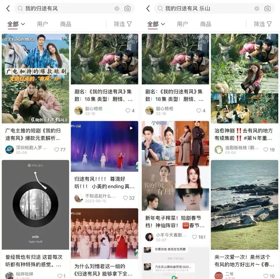 短剧中呈现了不少乐山当地的特色,比如开水白菜、冒烤鸭、郫县豆瓣酱等美食,以及变脸、扎染等传统文化。制片人刘子凡接受采访时表示,《我的归途有风》播出后有多个文旅部门找到华策来洽谈合作,短剧第二部也在筹备中。然而,从带动文旅这个维度来看,抖音播放量近2亿的《我的归途有风》并未能成功复刻《去有风的地方》,社交平台上讨论话题还是围绕剧集本身,很少去探讨乐山当地特色,因为这部短剧去乐山当地打卡的更是少之又少。![]()