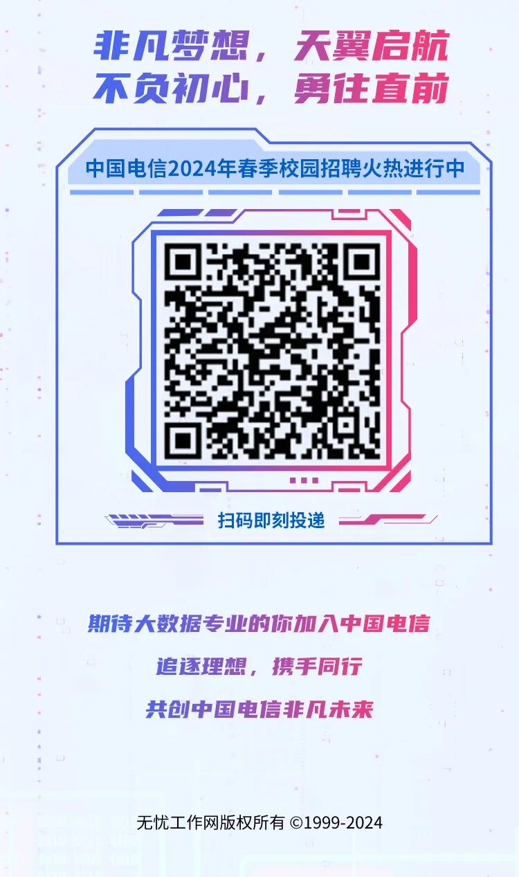 文章内容来源于公众号:中国电信校园招聘,点此可查看原文,内容版权归相关企业所有,本网站仅供交流学习。若涉及版权问题或存在侵权情况,请及时与我们联系,我们将第一时间进行删除处理。