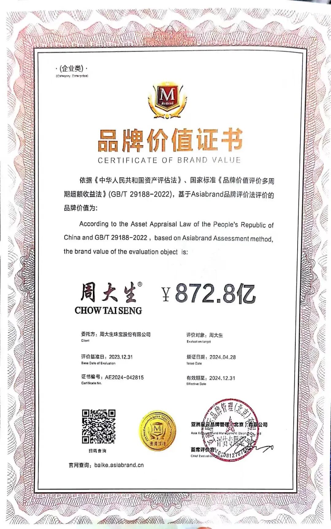 创新与品牌双丰收!周大生揽获“2024品牌强国论坛”两项大奖