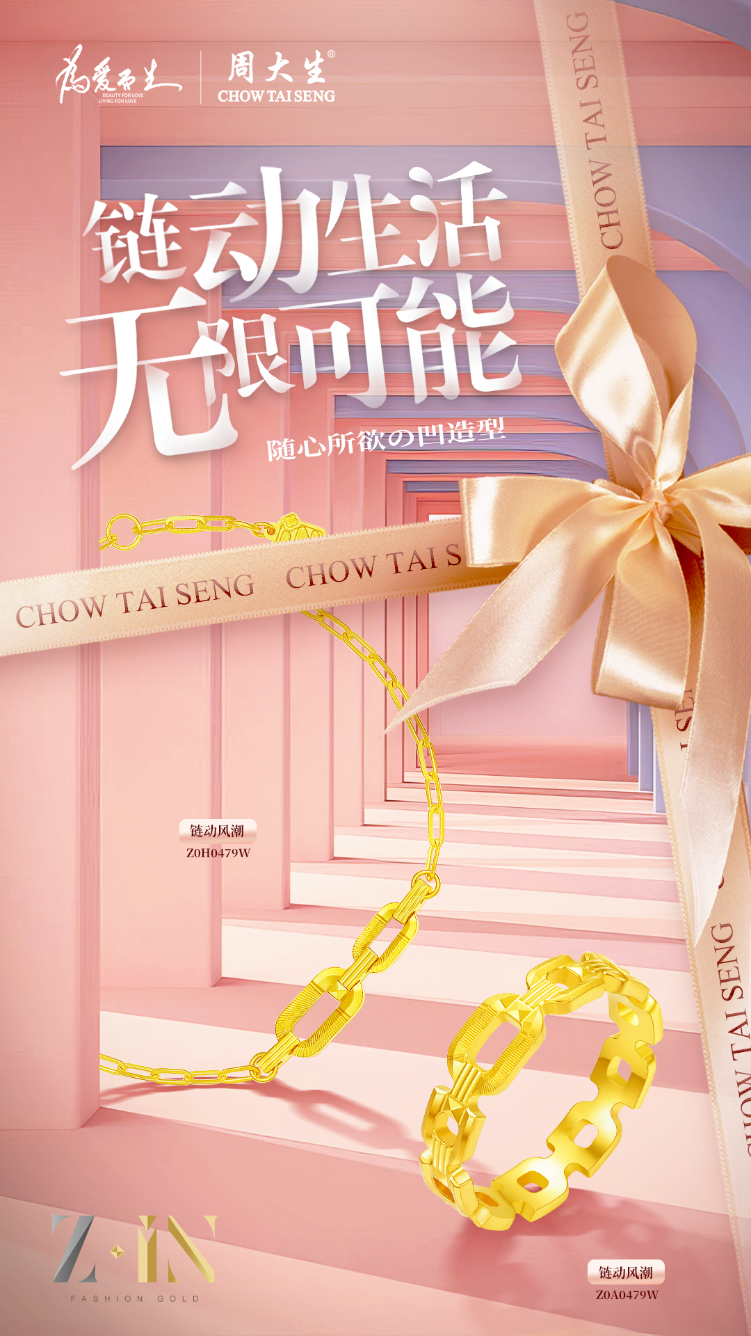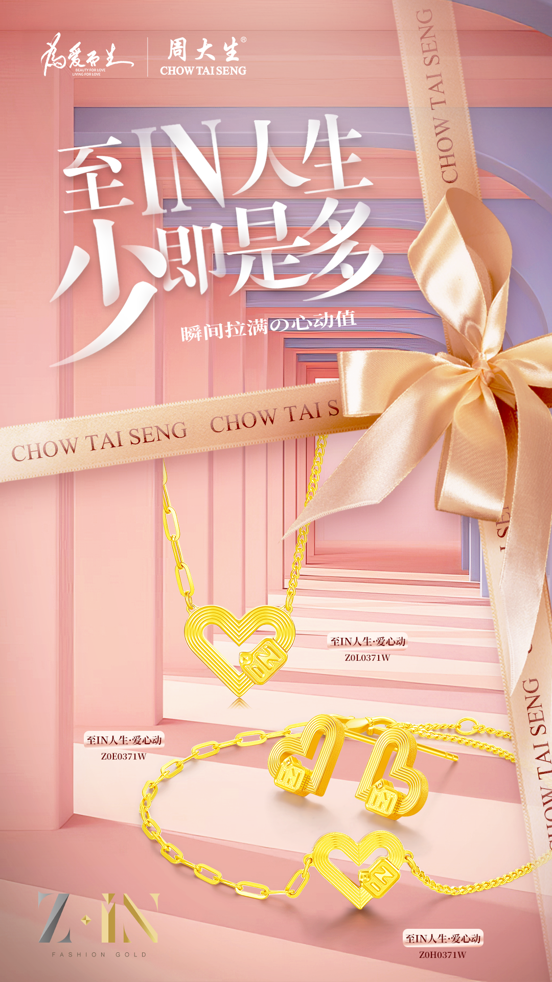 周大生珠宝以简驭繁,用极简主义的设计风格不断拓宽黄金珠宝的维度和深度,持续为消费者提供更多的情绪价值和更好的消费体验。iN时尚·高亮金系列推崇极简至美的设计理念,去繁化简,回归本真,直视内心中最简单纯粹的情感,向内思考,向外探寻,用至“iN”的态度丰盈美丽人生,拥抱生命的无限可能,引领黄金珠宝未来新风潮。