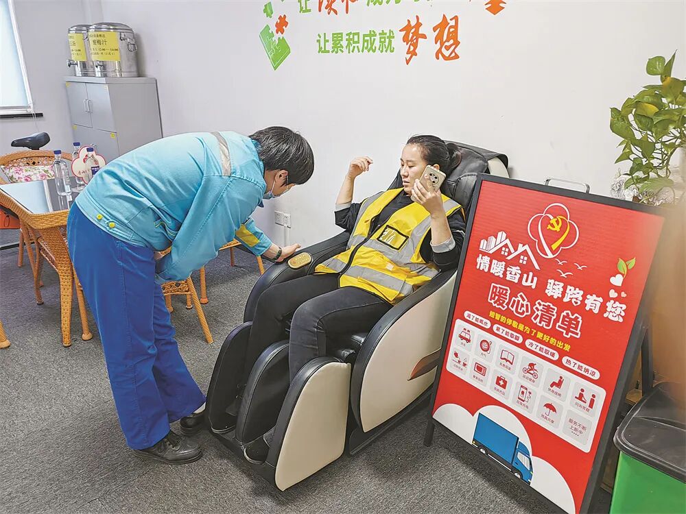 “以前半夜跑长途最难熬的就是又冷又孤独。现在不一样了,每次远远看到你们站上亮着灯的红色罩棚和‘司机之家’标识,我就知道到家了,就能美美睡一觉了。你们这里有洗衣机、烘干机、浴室、厨房,甚至连按摩椅都有,真是太中了!”