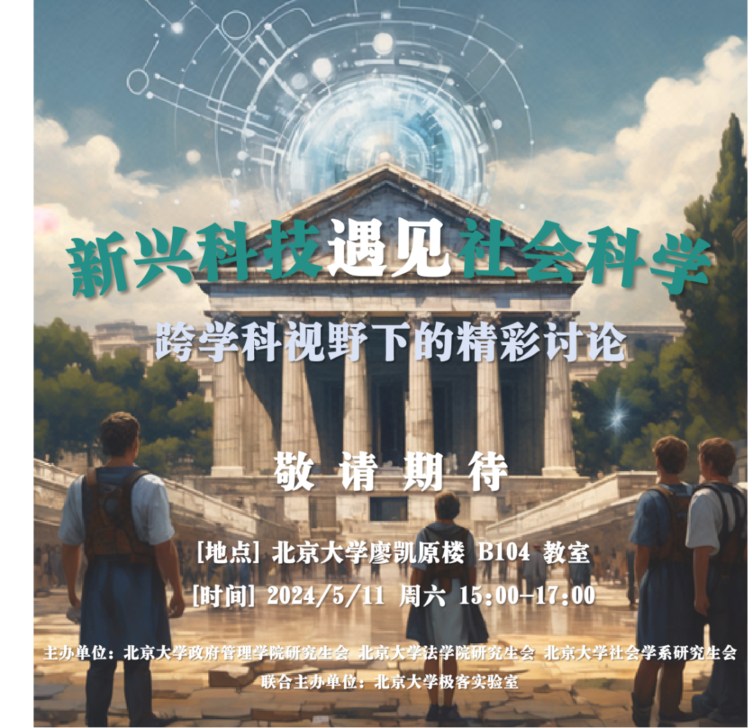 技术的边界以及风险是什么?社会科学又该如何适应这个时代?本次“研途政道”学术沙龙联合北京大学法学院研究生会、北京大学社会学系研究生会,以“新兴科技遇见社会科学”为主题进行跨学科视野下的学术讨论。这是一次打破学科壁垒的思维碰撞,我们诚挚地邀请您,一起探讨新兴科技、社会科学,以及我们将共同面对的未来。