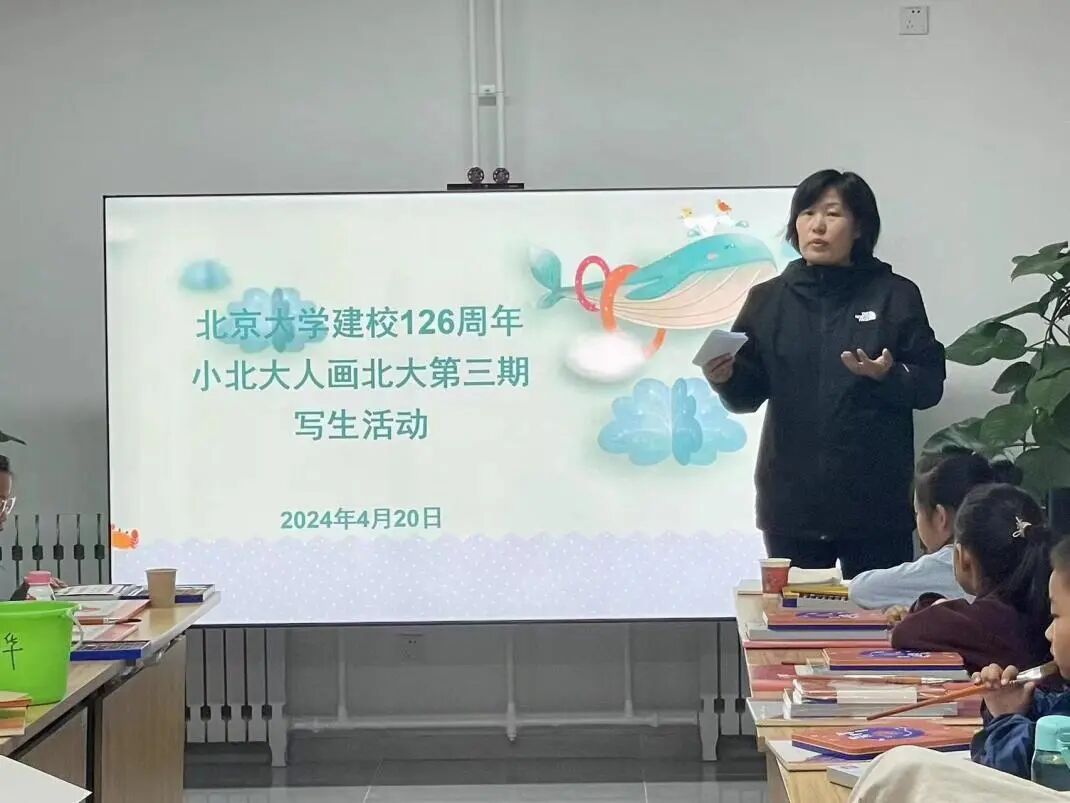 雏鹰社理事长田越老师在致辞中对小朋友们寄予了殷切的期望,鼓励孩子们用画笔勾勒出小北大人眼中最为动人的燕园风光。