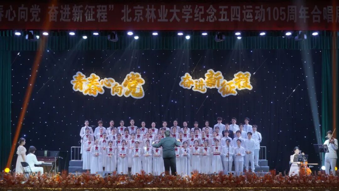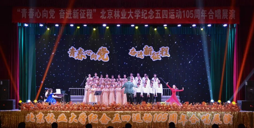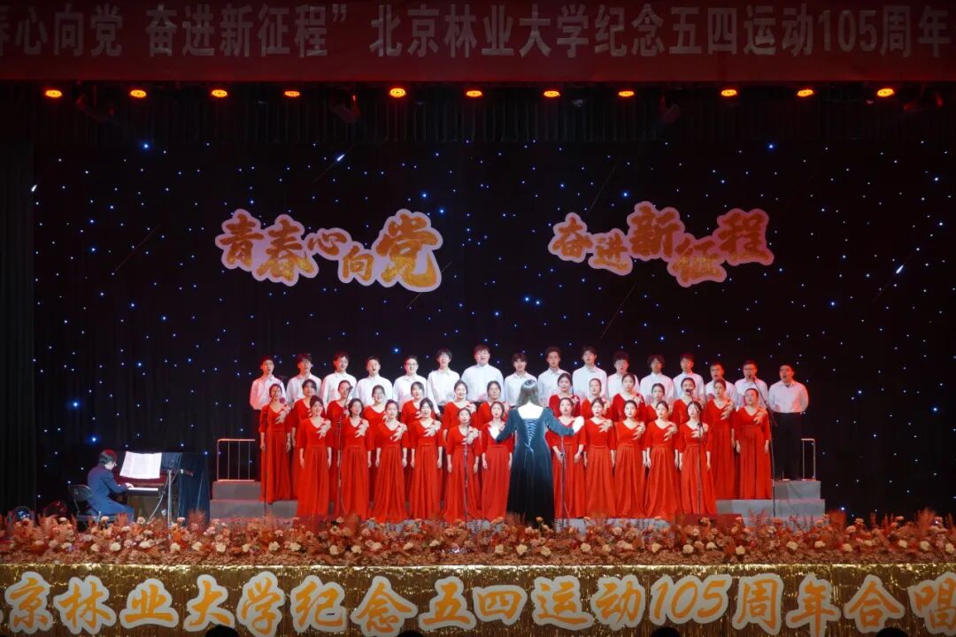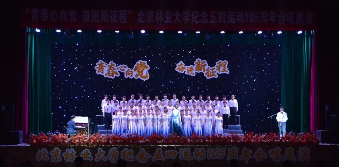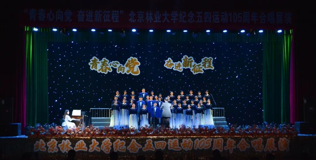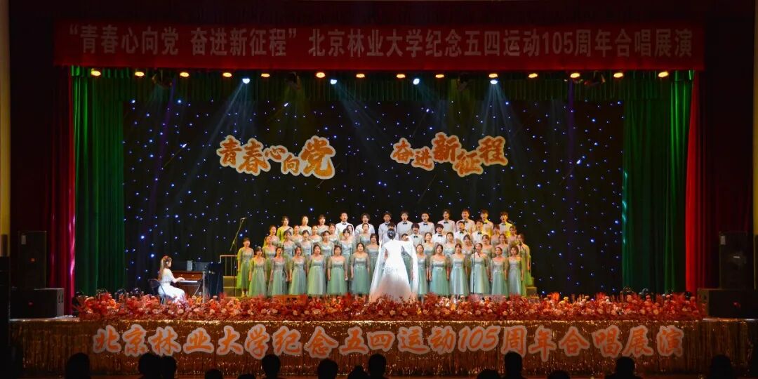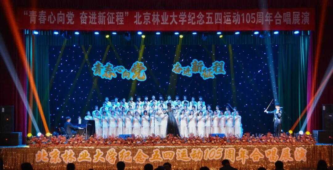 在五四青年节即将来临之际,4月27日晚,为纪念五四运动105周年,引导广大青年发扬五四精神,厚植家国情怀,由北京林业大学团委主办、各学院协办的“青春心向党 奋进新征程”纪念五四运动105周年合唱展演活动在田家炳体育馆落下帷幕。来自全校16个学院组成的十余支合唱队伍用嘹亮的歌声和生动的表演缅怀爱国先烈,以满腔热情传承北林精神,用青春的热情奏响时代的华彩乐章。