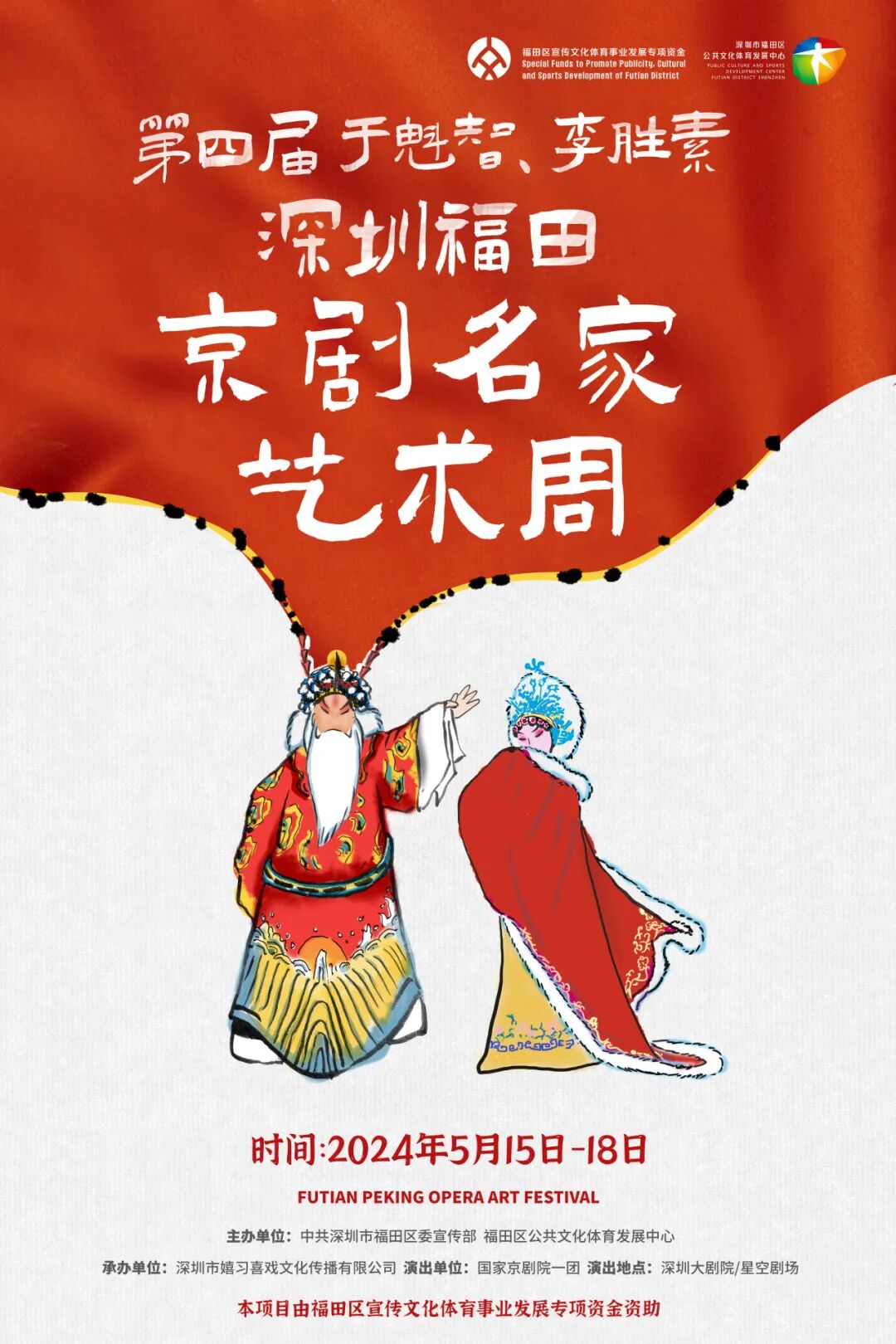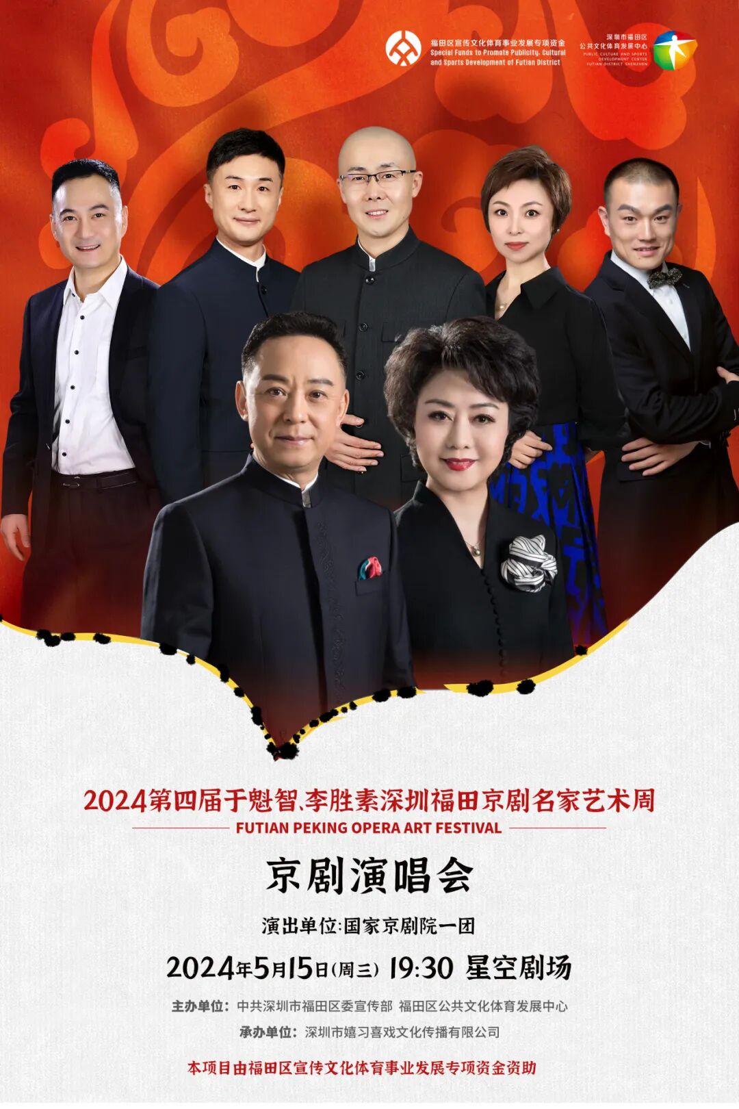 2024第四届于魁智、李胜素深圳福田京剧名家艺术周,将延续“名家阵容、国粹京剧普及、公益惠民”的特色,由当今京剧艺术的领军人物、著名京剧表演艺术家、福田区文化名人于魁智、李胜素领衔,王越、杜喆、郭瑶瑶、马翔飞、胡滨等国家一级演员,吕耀瑶、朱虹、刘垒、褚沣怡等优秀青年人才,名家荟萃,强强联合,将为深圳戏迷呈献经典京剧演出。