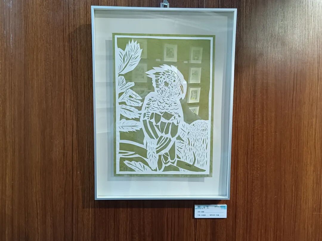 用白色纸张剪出鹦鹉的主体和其栖息的枝叶,张贴在草绿色的背景上,一幅栩栩如生的鹦鹉图就跃然纸上。这是福田小学四年级朱皓辉同学展出的作品《鹦鹉》,在纸艺社团课学习了两年的他收获颇丰,他说,“我觉得纸艺非常有意思,我的许多想法都可以通过剪纸实现。”