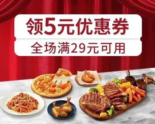 【如何参与】3月6日至3月13日活动期间,进入必胜客会员小程序微信支付优惠页面,即可领取“全场满29减5”优惠券;用户通过必胜客微信小程序进行点餐,选购任意产品并成功下单完成支付(微信亲属卡及云闪付支付方式除外),凭券即可享受单笔订单实付满29元立减5元优惠。