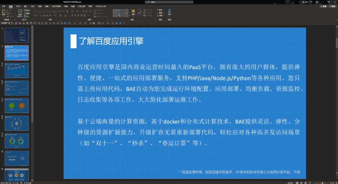 另外,从原稿的 PPT 中我们可以发现,整体的色调是以蓝色为主:
