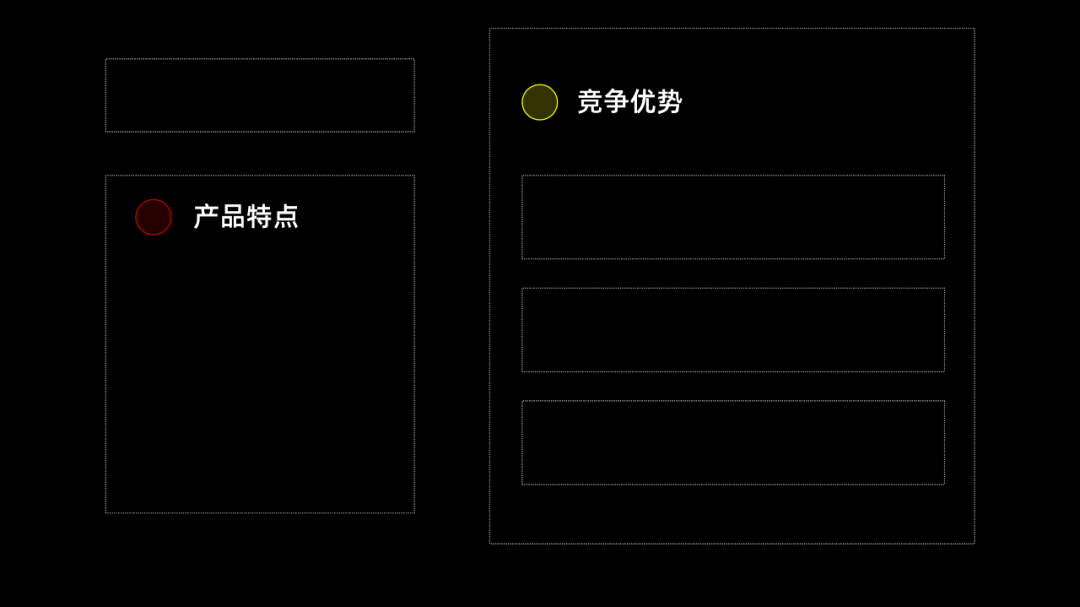 第二步,划分这些段落的层级关系,找出重点和非重点。还记得前面的原则吗?结论>数据>论据。咱们就基于这个原则进行层级划分。还有下面两段,层级划分方法是一样的,它能实现什么效果,是比较重要的信息,所以,重点呈现即可:因为这一页的内容,只包含两个大的方面,所以,我们可以选择左右布局,也可以选择上下布局: