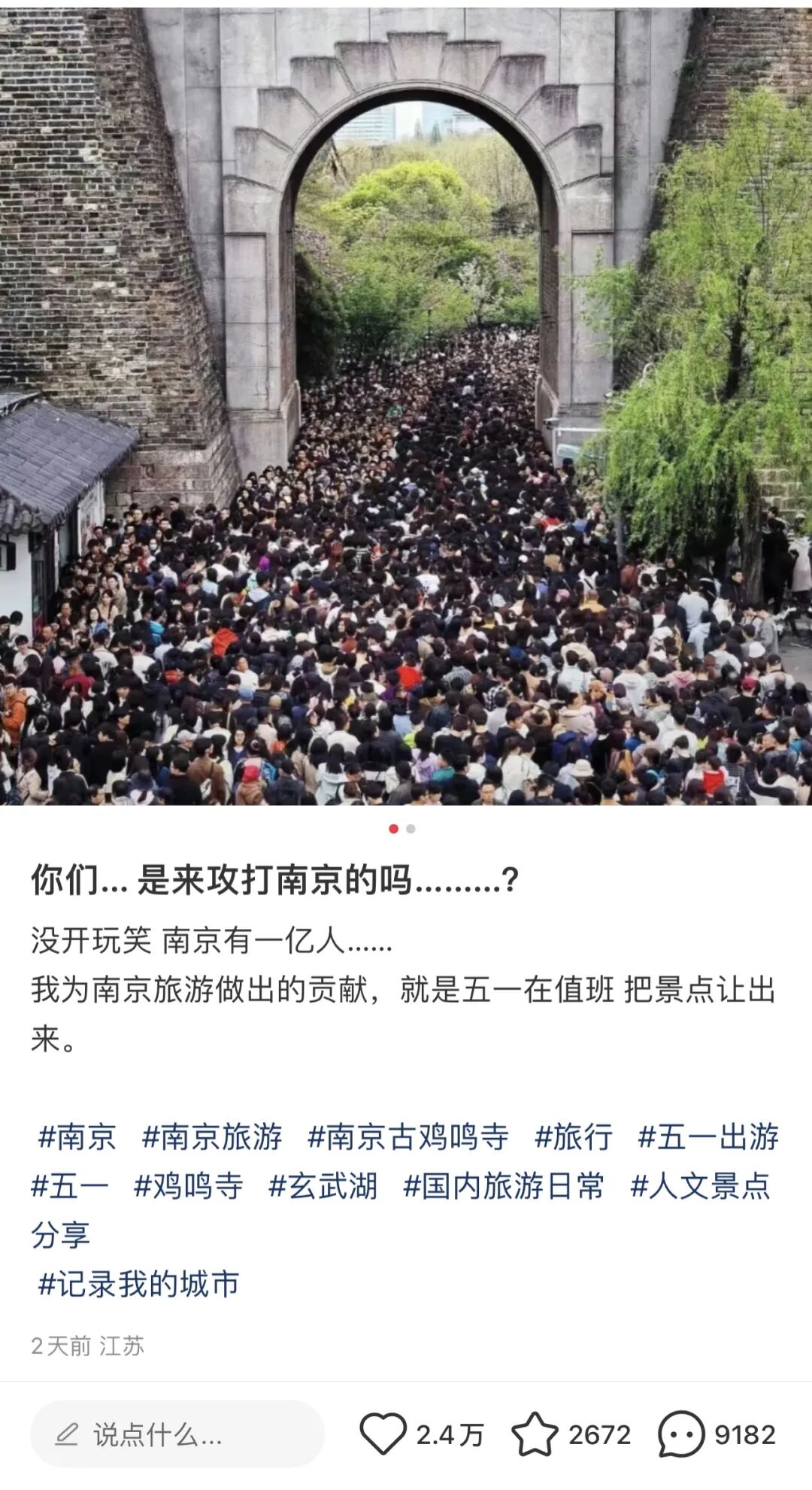 南京的网友表示:“我为南京旅游作出的贡献,就是‘五一’在值班,把景点让出来。”