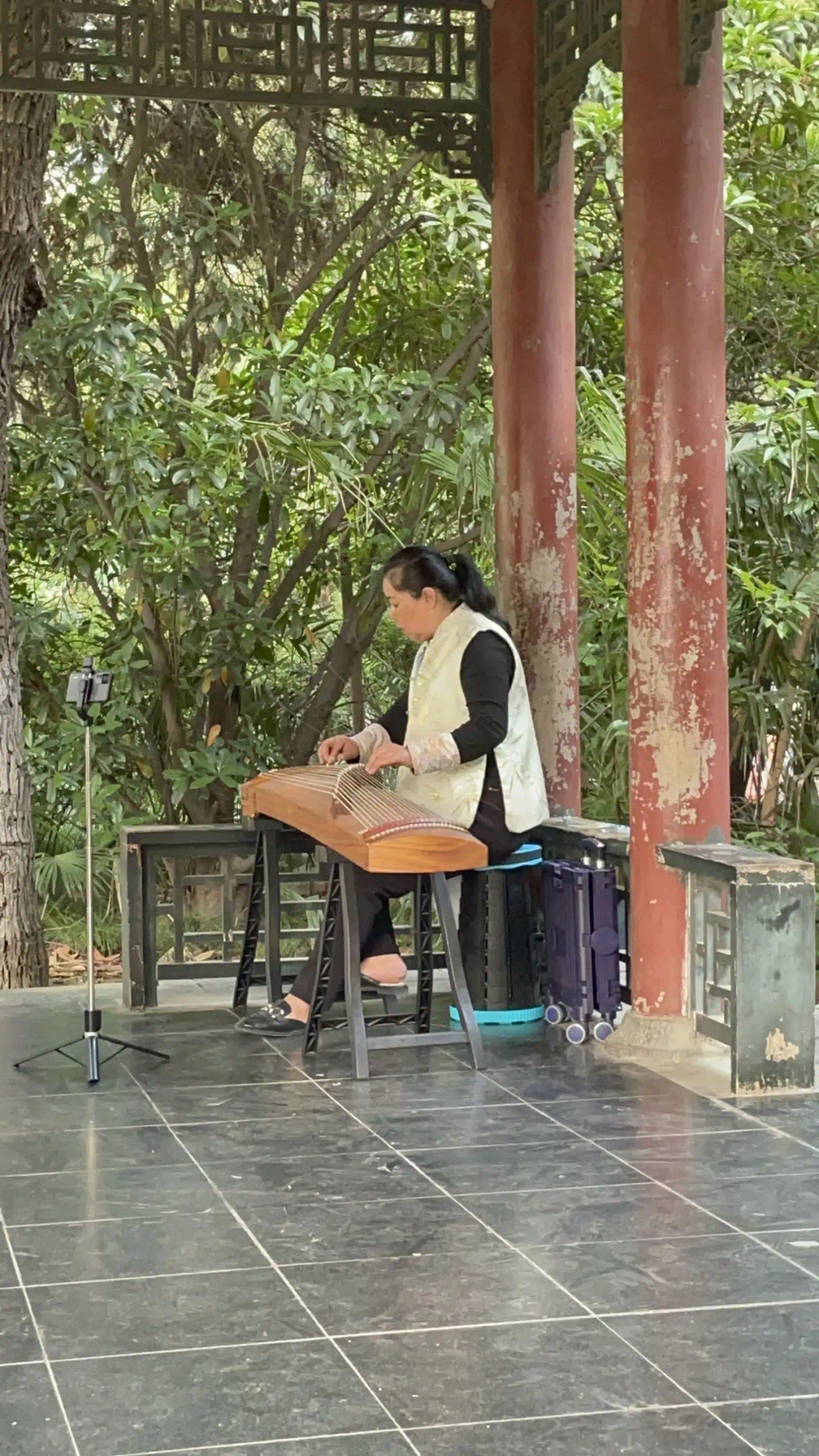 “假期闲来无事,便去公园遛弯。偶然看到公园里有阿姨在弹古筝。看到这一幕,瞬间感觉春光明媚,生活美好。希望我老了之后也可以有自己的爱好来作为生活的消遣,那一定是一件很幸福的事!”