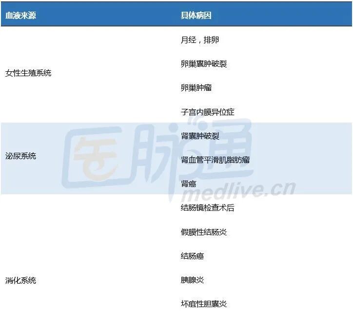 红色透析液通常表明腹透流出液(腹腔积血)中存在红细胞。这些红细胞来自腹膜,或来自腹腔内器官。此外,令人惊讶的是,红细胞还可来自部分或完全腹膜外结构。上述具体原因已归纳至表1。