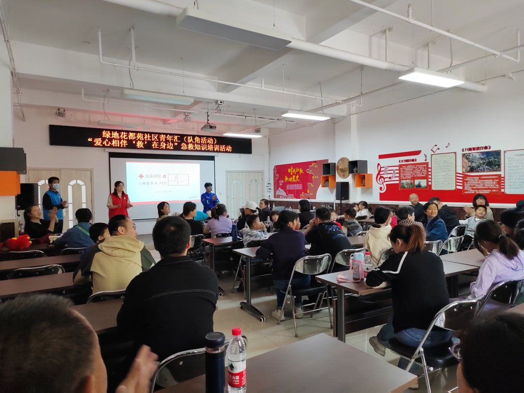 绿地花都苑社区青年汇于4月21日开展了“爱心相伴 '救'在身边”急救知识培训活动。活动中,蓝天救援队的谢老师带大家了解了心肺复苏急救知识的重要性,对救援环境、意识判断、胸外按压、人工呼吸等操作理论进行讲解,并通过现场演示与互动环节,展示心肺复苏、AED自动除颤仪等应急救护方法。通过此次活动,让大家认识到心肺复苏应急救护的重要性,掌握了心肺复苏、AED自动除颤仪基本急救技能,提升了青少年及家长们的自救互救意识和能力。