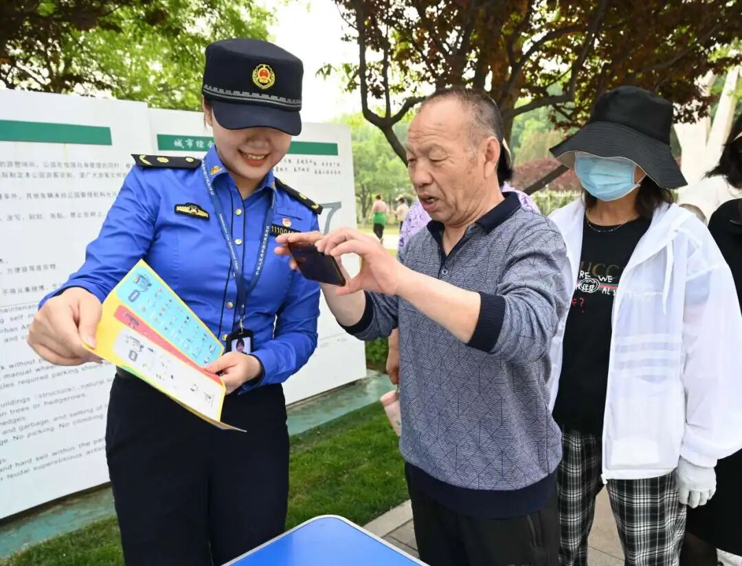 活动现场,团员青年及志愿者向市民解读《北京市公园条例》《北京市文明行为促进条例》等相关法律法规,通过身边案例以案释法,宣讲违法行为造成的危害和后果,引导市民游园过程中爱护公园设施,杜绝在建筑物、树木上涂写、刻画,严禁攀折花木、损坏草坪树木和乱扔垃圾等行为,营造文明、健康、绿色游园的新风尚。