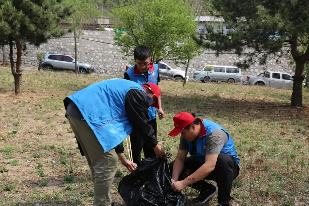 乡机关青年干部前往五大堰口袋公园开展环境治理志愿活动,在公路沿线捡拾垃圾、清理蚊蝇孽生地、对河道进行清理。并结合灾后恢复重建,在建筑工地周边仔细清理垃圾,对施工人员进行宣传,确保及时清理建筑垃圾并做好扬尘管控。