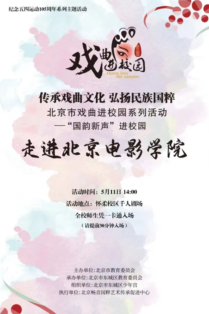 传承戏曲文化,弘扬民族国粹,“国韵新声”进校园活动定将向北京电影学院莘莘学子们展现出新时代戏曲文化的独特魅力和崭新风貌。