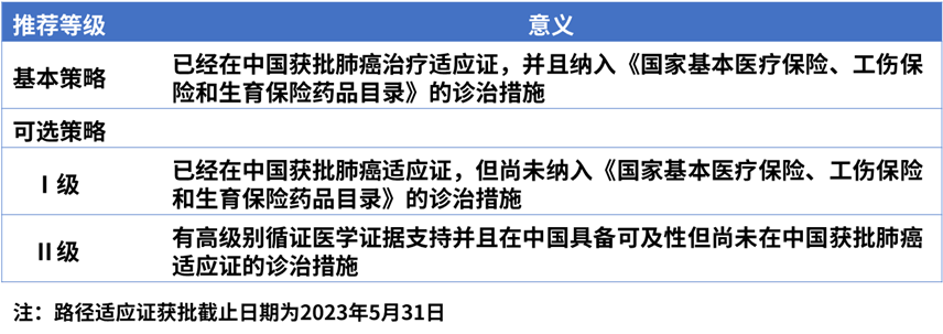 表1. 县域肺癌临床诊疗路径基本策略及可选策略推荐等级的意义