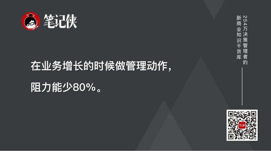 每一个管理动作都是资源的重新再分配。在业务增长的时候,无论是做人员调整、人员轮换,或者做其他的管理动作,阻力都能少80%。而业务没有增长甚至缩减的时候,管理就不好做。