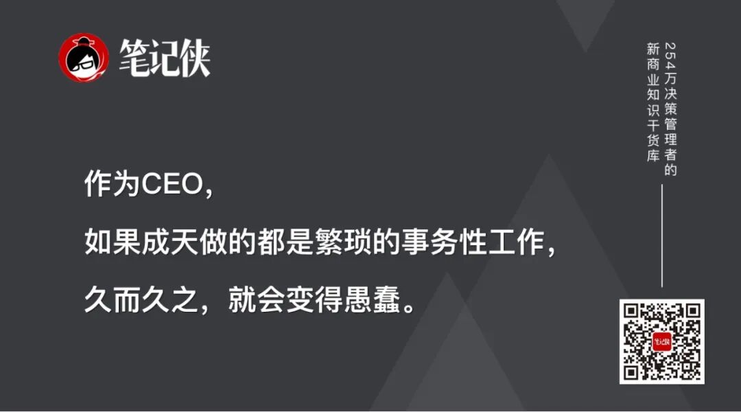 作为CEO,如果成天做的都是繁琐的事务性工作,久而久之,就会变得愚蠢。因为你没有时间去思考战略,对未来的洞察。