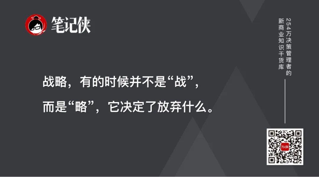 实际上,战略是两个问题,战略有的时候并不是“战”,而是“略”,它决定了放弃什么。