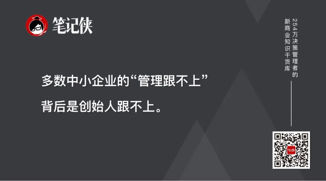 多数中小企业的“管理跟不上”背后是创始人跟不上。公司发展得不好,一定是老大的问题。但是往往公司发展得不好的老大,不会认为是他的问题,反而认为是高管、中层都不给力的问题。