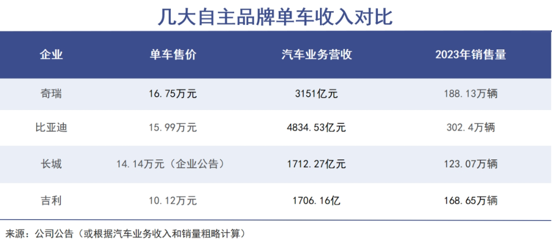 由于售价数倍于国内的海外市场占据一半,奇瑞的价值创造能力显著增强。巨潮粗略计算,奇瑞单车售价已经超越比亚迪、长城汽车和吉利,超过16万元。当然这一数字是按照集团整体收入计算,但即便达到15万元,在自主品牌中已经十分难得。
