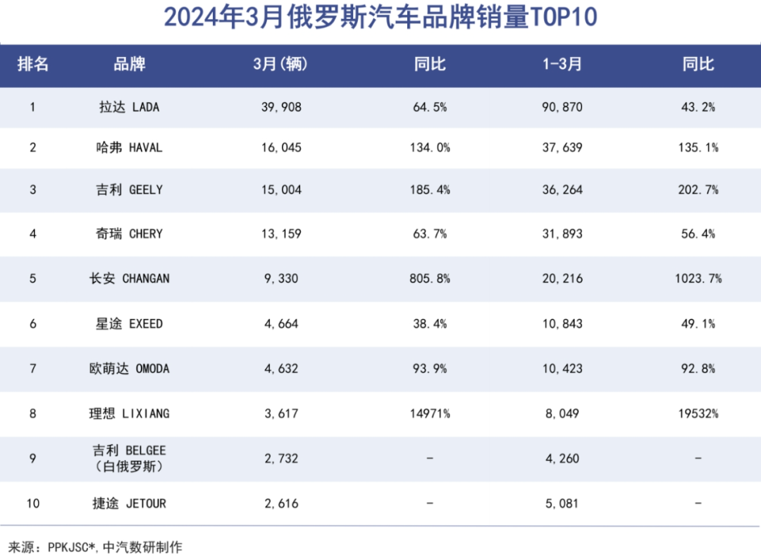 凭借海外爆卖,奇瑞在今年一季度强势晋级乘用车销量第二名,反超一汽、长安、吉利,仅次于比亚迪,而且还是TOP10中增速最快的车企。