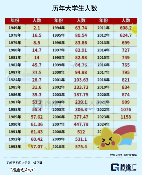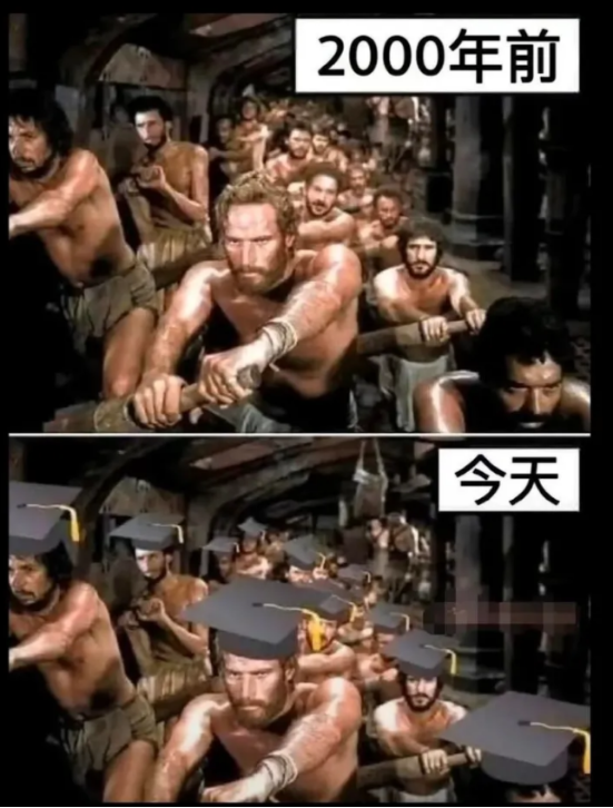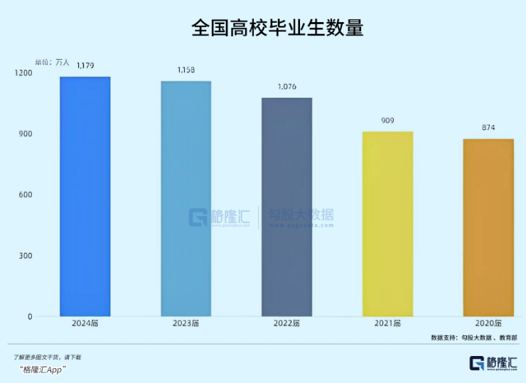 大学生如今的困境,学历贬值是一方面,社会太卷了是一方面。还有更关键的一点:现行的人才培养机制与市场需求不匹配。假设每个人平均18岁高考,拿历年出生人口乘以0.75,可以算出,至少在未来十年,全国每年依然有千万以上大学毕业生。比如今年退休的老人,基本都是60后,60年代每年的出生人口都超过2500万。他们大约在40年前参加工作,比如1984年,当年的应届生数量是28.7万。也就是说,当年社会上只有1%多一点的工作岗位,是针对大学生的。而2024年新来的这一批,大学生占比75%,对应1984年刚走的那一批,对应得上么?不光是今年这一批,你哪怕是再往后推10年、20年,依然对不上。直到世纪初,中国社会绝大部分的就业岗位,都是民工,少数是体制内工人,极少数是坐办公室的白领。搬砖、拧螺丝的农民工?保姆?泥瓦匠?去人才市场一招一大把,根本不值钱。现在呢?大学生早就烂大街了,有手艺、能卖力气的反而变得稀有。于是你发现,在大学生刚毕业底薪3000的时候,贴瓷砖的月入过万,水电工月入两万,住家保姆更是不忍言。大多数人,宁愿向往办公室白领几千块的窝囊费,也不羡慕工地2万的血汗钱。不信随便找个老师傅问问,哪怕他的收入挺高,依然不愿意自己的儿女接班。结果等孩子毕业了,在社会上四处碰壁,才发现回家跟老爹干活才是正道。这种家庭、这种职业,都还算比较好过日子的,起码有门手艺。去年有个段子,北漂骑手奋斗20年供儿子大学毕业,父子俩成了同事。前有“三代烟草人的传承与守望”,后有“一生父子情深,两代快递人”,对比何其强烈。说明白点就是,社会上不是没有足够多的岗位,而是有些岗位压根就不是给普通人准备的,剩下那些也没有那么多针对大学生。我们经常能看到工厂招工难的新闻,也经常有专家恨铁不成钢“年轻人不肯脱去长衫”云云。同样的道理,如果外卖骑手真的人均月入过万,“两代快递人”根本不算负面新闻,这是反映盛世繁荣的好事啊。很多厂招聘时给出了4000~7000元的工资,实际的潜台词是“计件,不交社保”,熟练工每天干满12个小时才能拿到这么多。而且只有旺季才能拿这么多,没活的淡季,无法加班,工资自然就下去了。相比之下,外卖骑手勤快点能赚八千到一万,要强多了。说明越来越多年轻人其实早就脱去长衫了,他们的面子真没那么薄。水往低处流,我们已经不在低处了,但有些厂子、有些企业,仍旧要靠吃洼地的人口红利才活得下去,这才是当前劳动力市场错配的真实图景。产业转型、产业升级都需要时间,必然存在漫长的阵痛期。