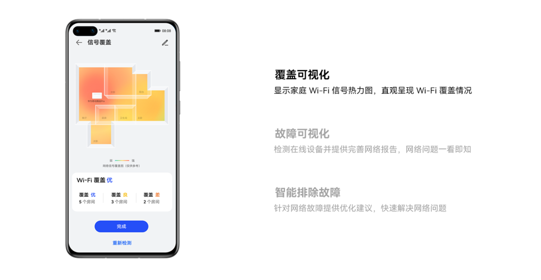 儿童上网保护功能可以根据业务场景灵活控制上网时间,游戏、视频、社交、支付、安装应用和网址黑名单等功能均可以通过家长手机进行权限管理,确保小朋友的健康成长。另一个重大软件升级点就是支持可视化智能诊断。不论是SIM卡侧还是Wi-Fi侧的网络使用情况,均可以通过这一功能实现信号覆盖可视化。