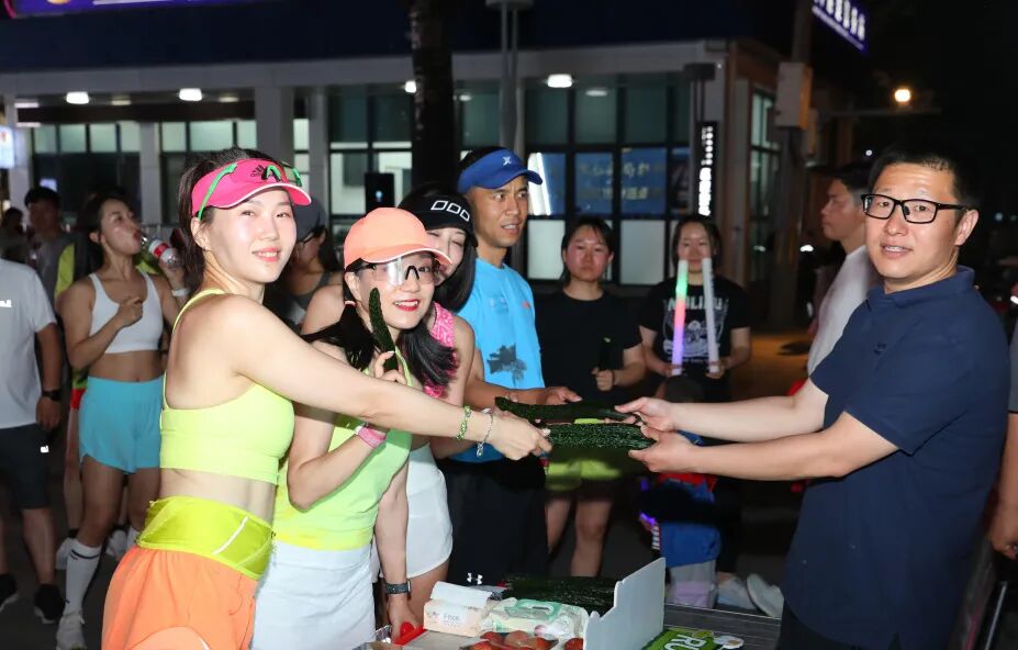 随着热身结束、夜幕降临,跑友们点亮身上的荧光设备向林荫绿道奔去,跑步小白、资深爱好者、专业跑者都加入到这个闪闪发光的人流之中,用欢笑和汗水诠释对绿色生活的热爱。