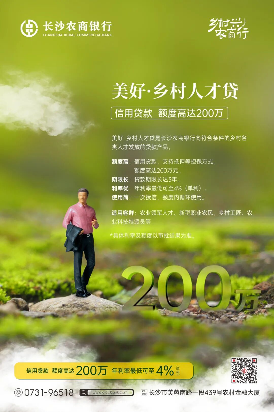 美好·乡村人才贷是长沙农商银行向符合条件的乡村各类人才发放的贷款产品。