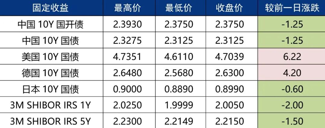 市场情绪稍有回暖,超长端弱势明显:4月25日,债市短端回暖,超长端弱势明显,收益率曲线陡峭化。截至发稿,5年期国债活跃券“23附息国债22”收益率下行3.25bp,10年期“24附息国债04”上行0.25bp,30年期“23附息国债23”上行1.25bp报2.48%。国债期货方面,30年期及10年期合约均下跌,30年期主力合约跌0.35%,5年期及2年期微涨。国债方面,183D 230024成交在1.52-1.56,2.56Y 230025成交在1.94-1.96,4.47Y 230022成交在2.06-2.11,6.39Y 230019成交在2.21-2.25,9.33Y 230018成交在2.27-2.34,29.47Y 230023成交在2.41-2.49。金融债方面,22D 230206成交在1.64-1.69,1.85Y 210203成交在1.97-2.01,4.08Y 230208成交在2.11-2.15,5.4Y 190215成交在2.2-2.25,9.07Y 230210成交在2.33-2.4。
