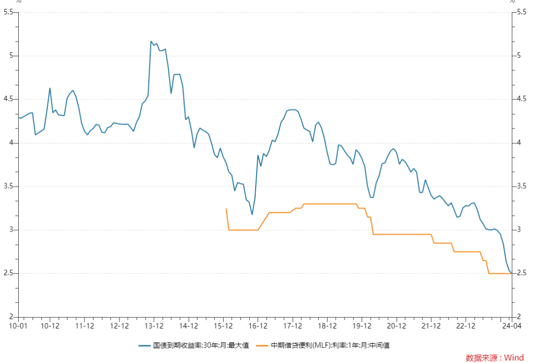 10年国债已经在2.3%以下运行了近一个月,昨日低点触及2.215%,极端行情中30年国债也迎来了低于MLF的历史性时刻。业内不乏“行情突破认知,定价无从下手”的感叹,机构分析师表示“MLF加减点定价中长债的策略有所弱化”。