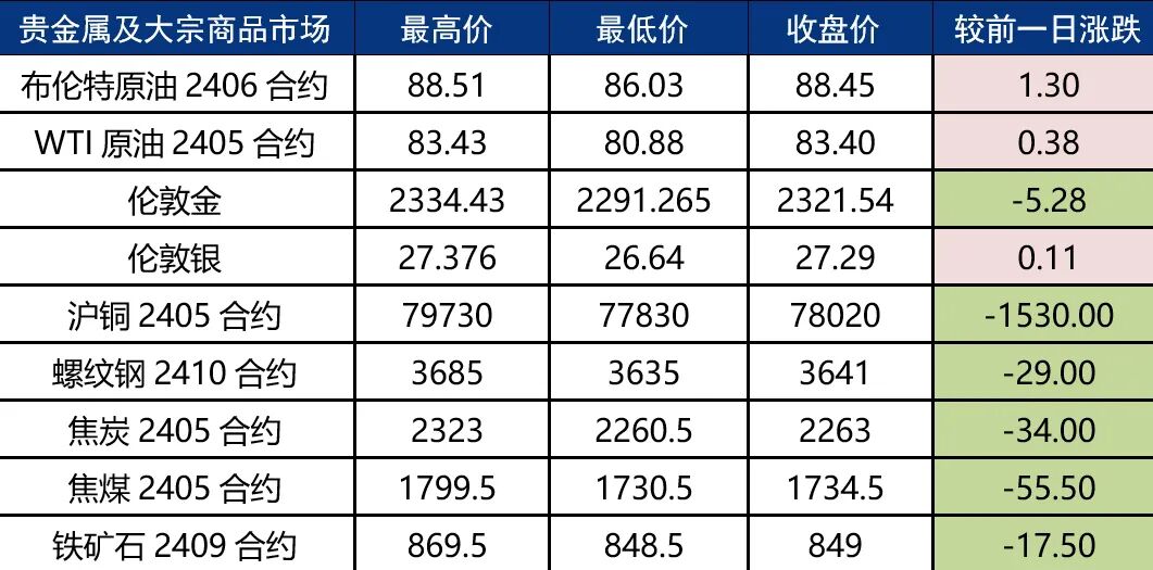 隔夜美元指数下跌0.41%,收在105.69。日本央行上月刚从其激进刺激政策中退出,市场普遍预计,在周五结束的为期两天的会议后,日本央行将维持其短期利率目标在0- 0.1%的区间不变。此前植田和男最近的言论暗示,有可能在今年夏季或秋季左右再次加息。预计日本央行将在周五发布的最新预测中预测,未来3年通胀将维持在2%目标水平附近,表明其准备在今年再次加息。目前日本利率接近于零。