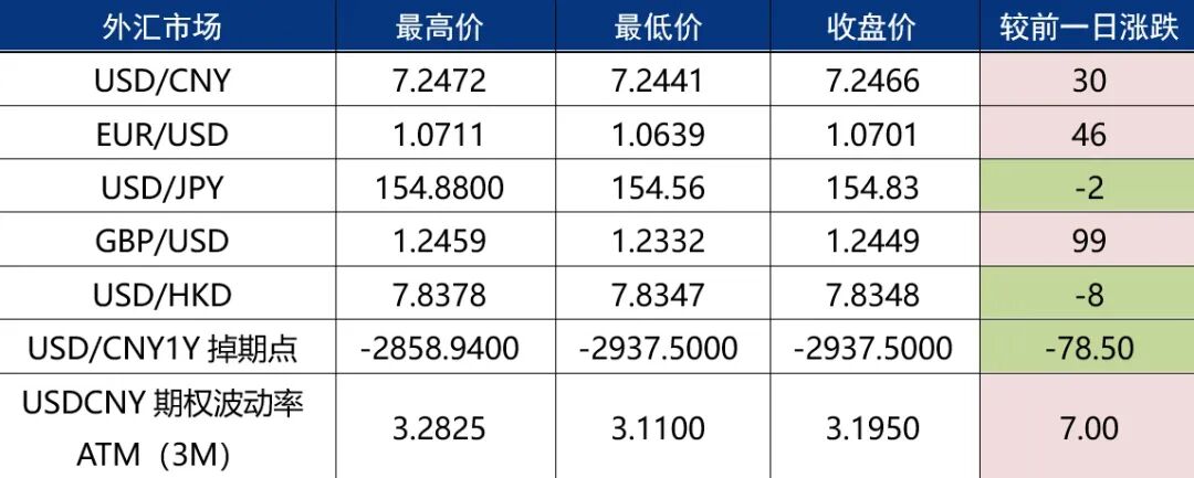 4月24日,人民币对美元中间价报7.1048,调升11个基点。前一交易日中间价报7.1059,在岸人民币16:30收盘价报7.2466,夜盘收报7.2448。