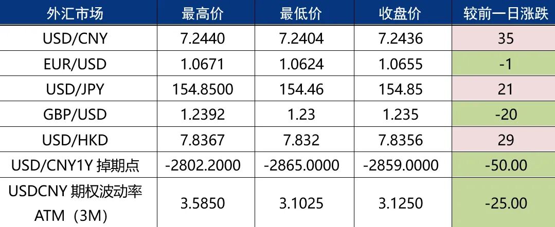 4月23日,人民币对美元中间价报7.1059,调贬16个基点。前一交易日中间价报7.1043,在岸人民币16:30收盘价报7.2436,夜盘收报7.2440。