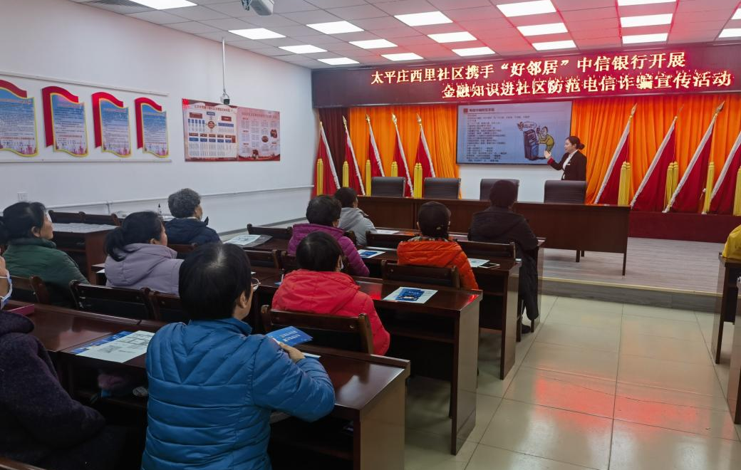 中信银行北京分行积极响应“普惠金融推进月”行动要求,3月28日联合太平庄西里社区举办“金融知识入社区”沙龙活动,社区内小微企业主和社区居民代表参加活动。活动中,北京分行以“好邻居”身份,介绍了中信银行普惠金融产品服务及政策、防范电信网络诈骗及非法集资案例等,并现场解答百姓疑问,取得良好效果。下一步,中信银行北京分行将坚守初心使命,践行社会担当,持续做好普惠金融进社区服务,让广大群众感受到普惠金融就在身边。