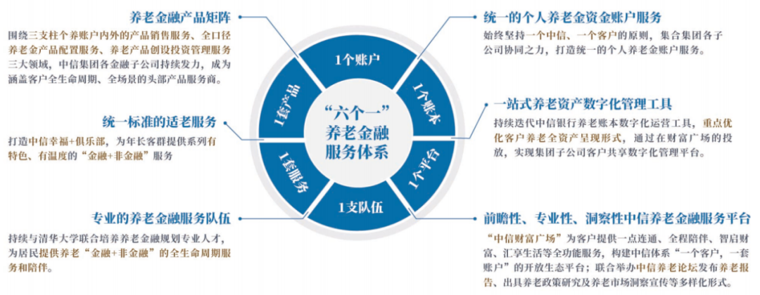 图:中信解法“六个一”养老金融服务体系