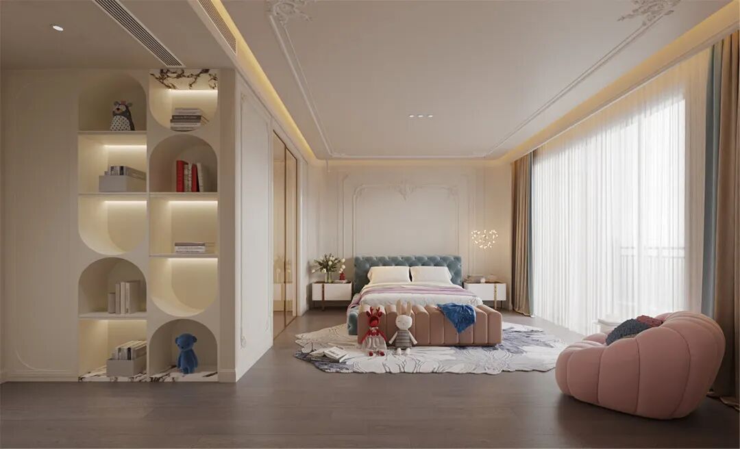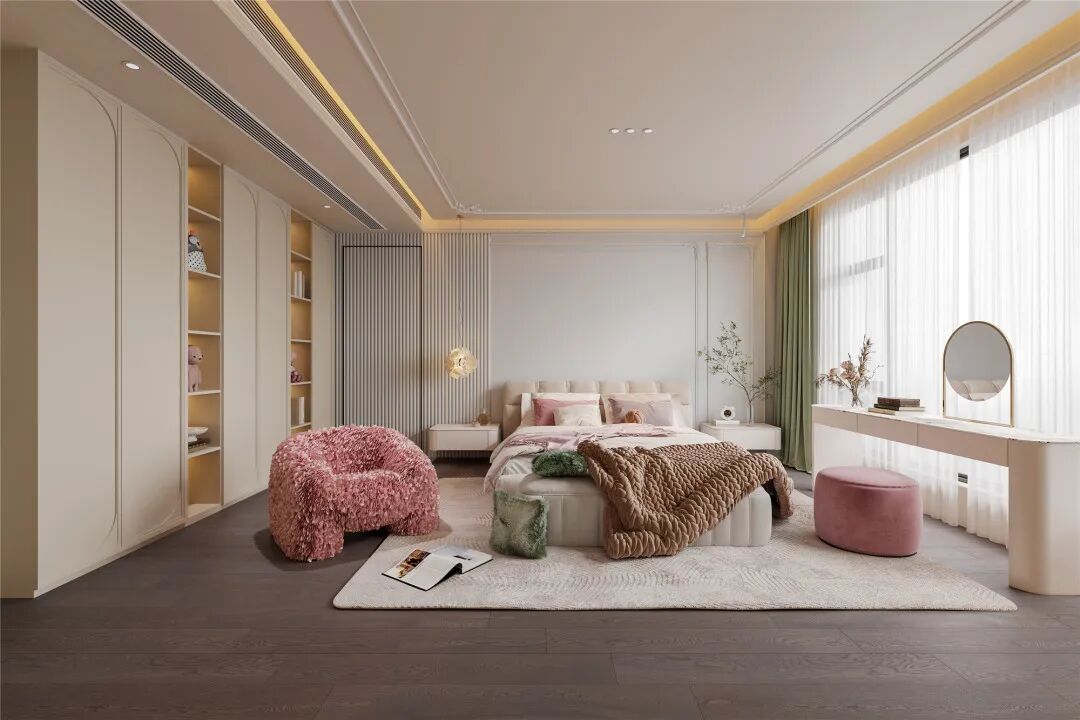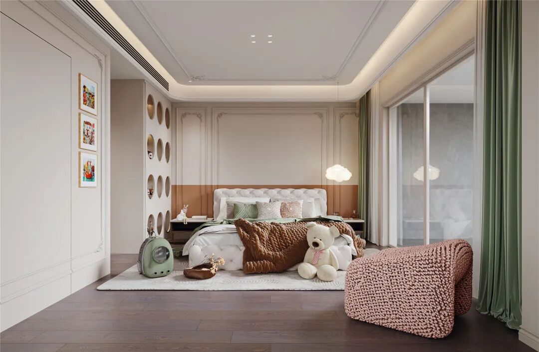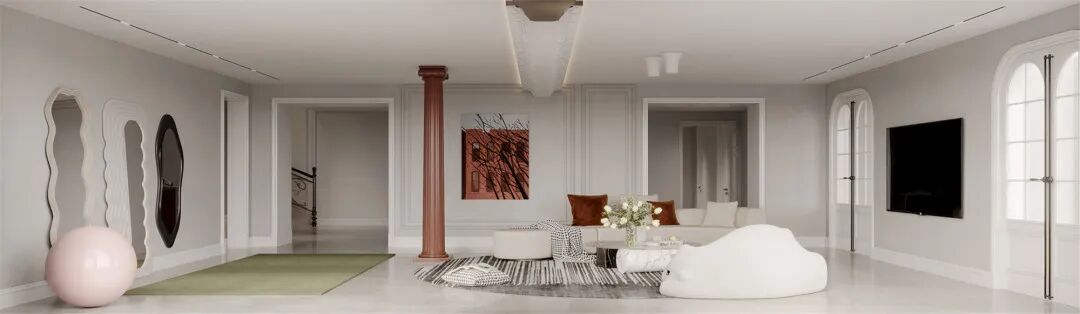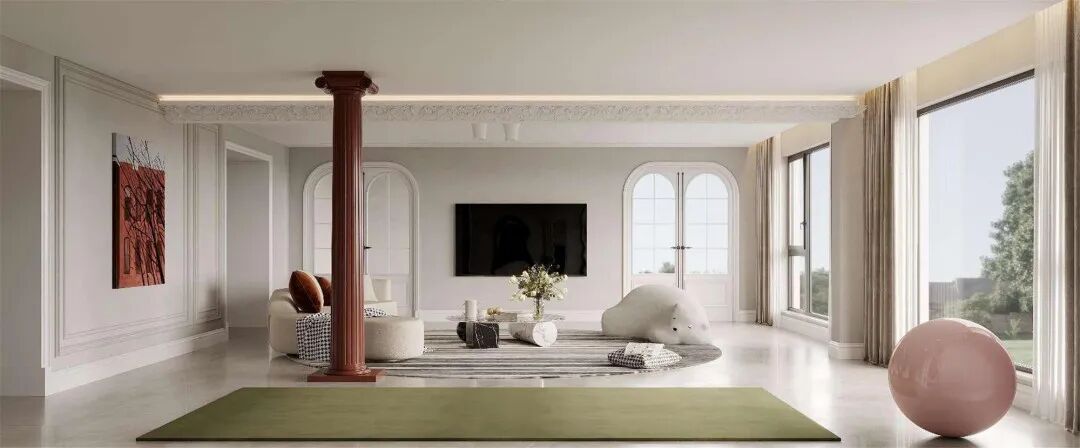 南京江宁区,一处480㎡的私宅,设计师选择用现代法式风来赋予空间不同的层次;不论从窗外的自然之绿,还是业主喜欢的甜美之粉,一切搭配都繁而不乱,多重元素和色彩碰撞出一种微妙的和谐。